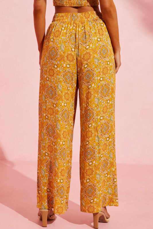 Yellow Bohemian Floral Print Pocketed Wide Leg Pants
