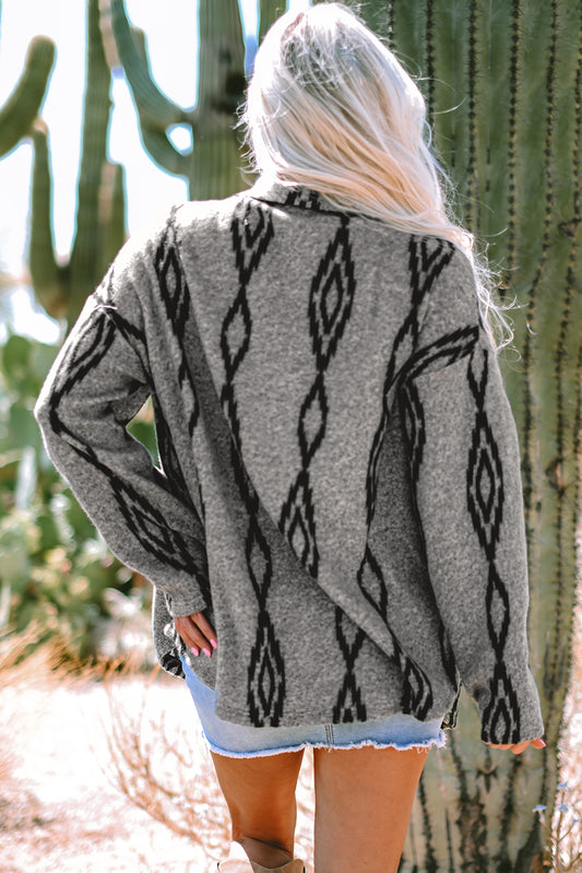 Gray Aztec Contrast Chest Pockets Loose Shacket