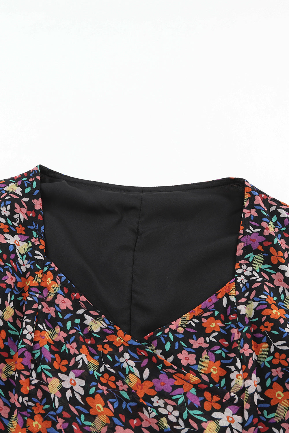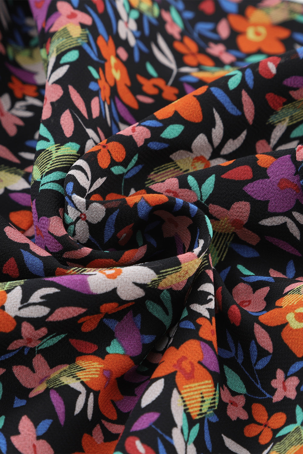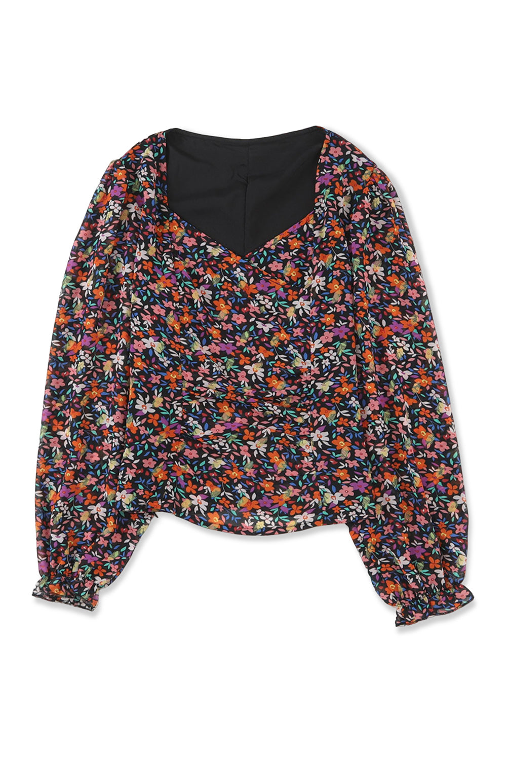 - This floral blouse features long sleeves with elasticized cuffs and a unique neckline