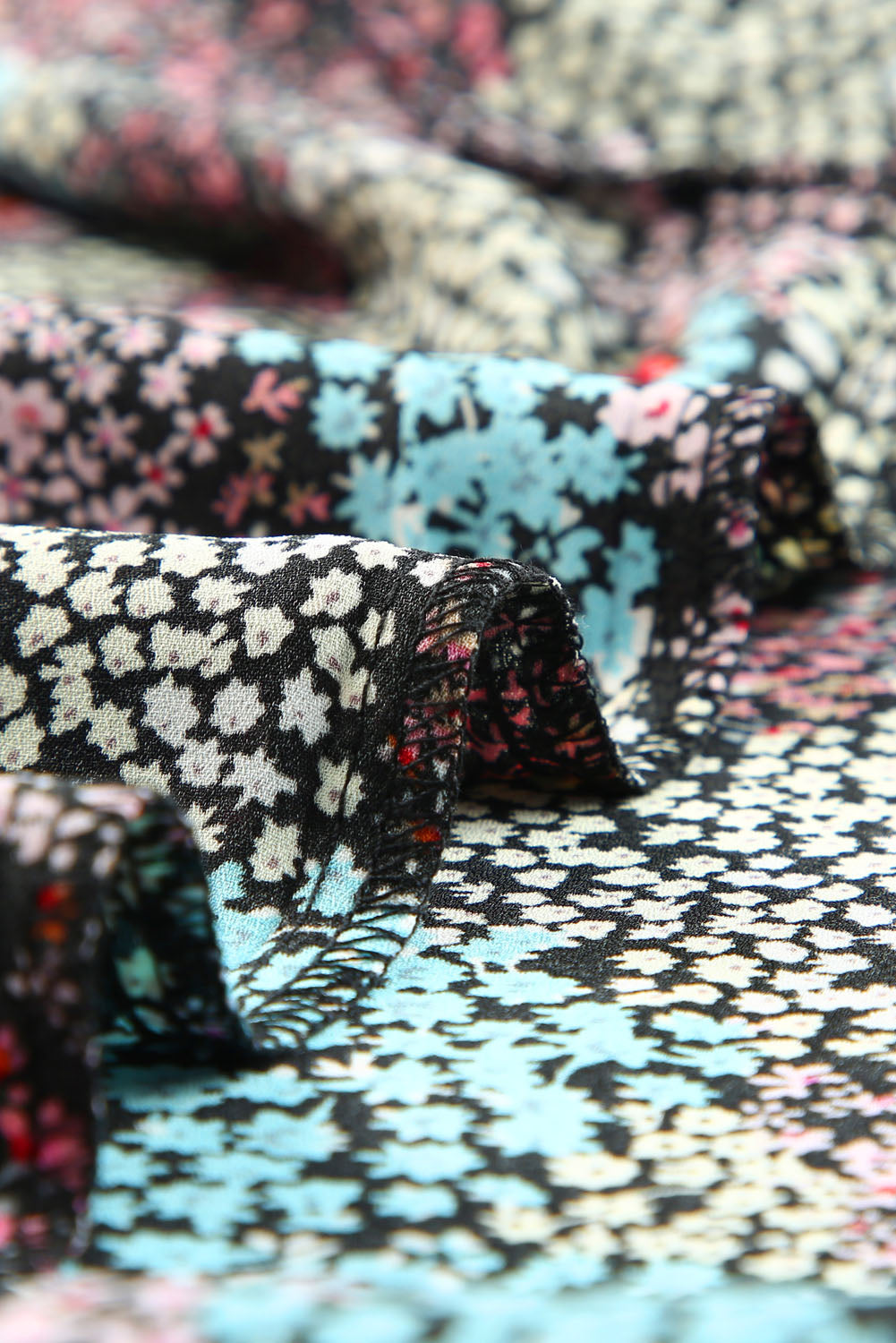 Multicolor Vibrant Floral Tie V Neck Puff Sleeve Blouse